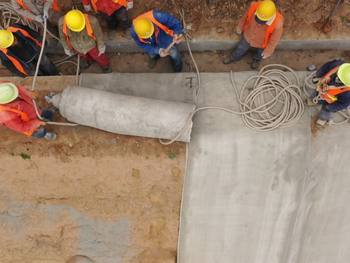 6、 新型復合水泥毯像布一樣儲存、運輸,鋪設起來也非常方便。